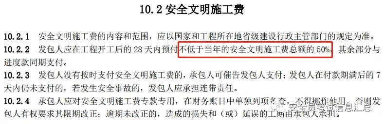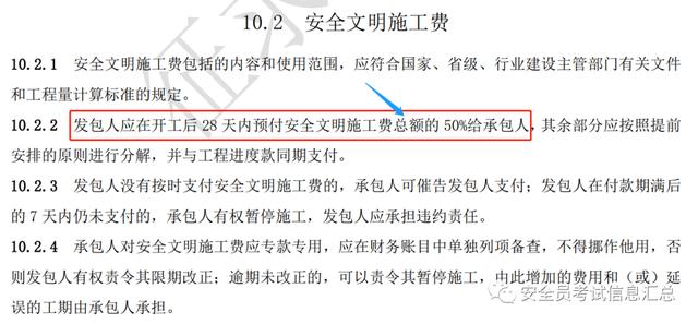 对于安全人来说,在开工28天内就可以拿到50%的安全文明施工费,使得施工安全投入更有保障,可谓是一个好消息!