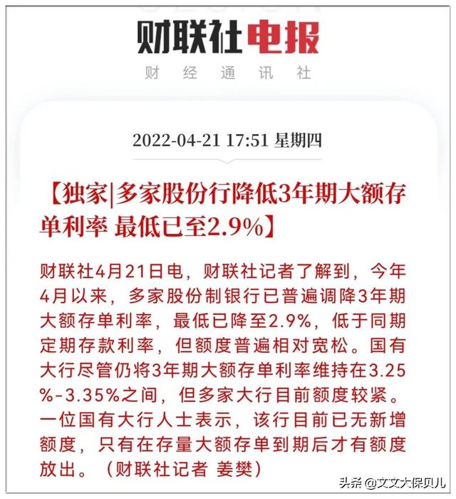 2020年的时候,20万起购的3年期大额存单的利率还有4%呢;到了去年,就只有3%点多了。