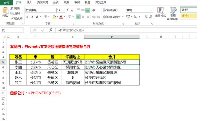 案例四:Phonetic文本连接函数快速完成数据合并