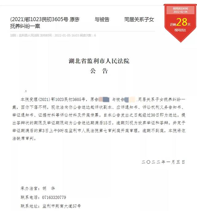 2022年1月4日,襄阳市老河口法院首次适用新修订《民事诉讼法》办理了某案件的公告送达,这也是该院发出的首例网络送达公告。