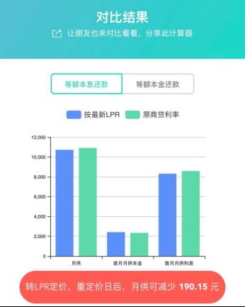 仍以上述假设为例,可以看到,转LPR定价,重定价日后,月供可减少190.15元。