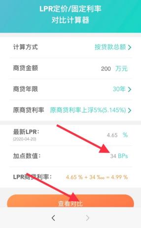 第一步:打开“LPR房贷计算器”,点击“对比看看”,如图: