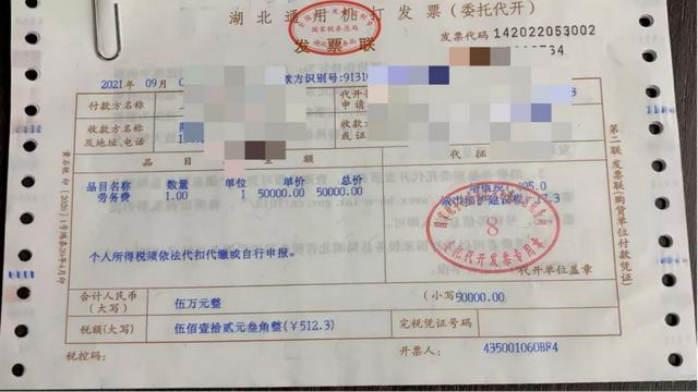 【案例】上海凯特服装有限公司聘请张某为其提供产品设计服务,2021年9月收到张某提供了一张湖北省黄石市税局代开的劳务费发票,发票金额50000元整,其中增值税495元。(如下图示)