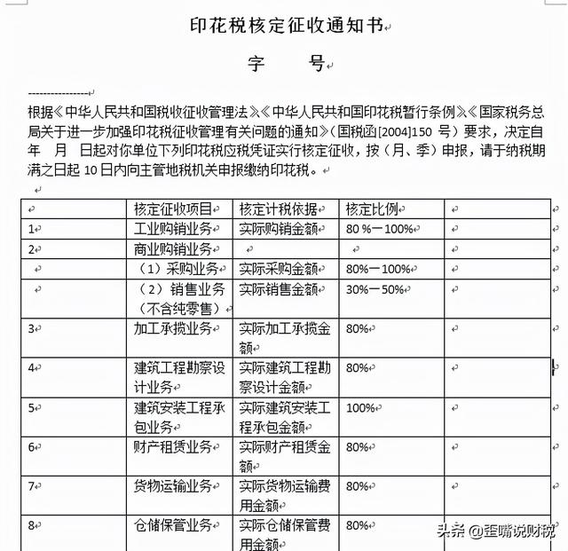 但是,想要核定征收,需要税局认定,并给你个通知书。如果没有通知书,却私自进行打折申报印花税的话,存在未足额缴纳印花税的风险。