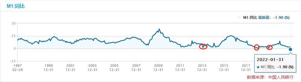2.2019年1月M1增速同比0.4%,增速也几乎转负,后期伴随新的宽松政策,M1增速也开始回升,股市也随之转牛;