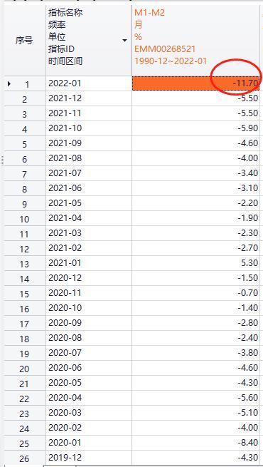 在M1增速转负的带动下,M1-M2的剪刀差也迅速拉大到-11.5%,创下2013年以来最大的剪刀差值