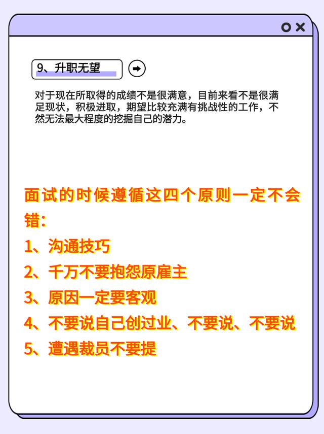 离职原因怎么说比较合理(HR见过的最好的合理的离职理由 | 建议收藏) 心态决定人生 2025-12-21 00:13:41 280 0 这样回答HR离职原因,才是满分答案!很多耿直打工人,在HR问起你为什么从上一家公司离职的时候,就知无不答,牢骚满腹,从而错失Offer。今天胖虎君就来给大家一个满分答卷我是吃啥啥不剩,跑也跑不动的胖虎君 离职原因怎么说 << 外资企业法人变更需要哪些材料(上海公司变更法人注意事项,变更法定代表人) 您可以还会对下面的文章感兴趣: 三个月离职原因怎么说(有些00后动不动就离职?辞职理由很刚,老板看了都不敢吭声) 工厂面试离职原因怎么说(面试过程中,被问到上一家公司离职原因时该如何回答) java离职原因怎么说(程序员跟老板提离职,理由连自己都笑场,网友:逗死我了) 与领导关系不好 离职原因怎么说(领导逼你离职的原因就在这20条了) 面试官问离职原因怎么说(面试时被问到离职原因,如何高情商地回答面试官?) 离职原因怎么说呢(离职原因怎么说?) 上一个公司离职原因怎么说(“为什么从上家公司离职”,这样回答面试官直接录取) 短时间内离职原因怎么说(你的离职原因应该这么说!让面试官满意的几种回答!(二)) 面试时候离职原因怎么说(面试被问离职原因,你会怎么回答?) 问到上一份工作离职原因怎么说(面试官问:你因为什么从上家公司离职呢?) 相关文章 12306官方网站官网(购票更便捷!中国铁路12306网站即将改版升级!) 离职原因怎么说比较合理(HR见过的最好的合理的离职理由 | 建议收藏) 外资企业法人变更需要哪些材料(上海公司变更法人注意事项,变更法定代表人) 律师在线咨询qq群(怎样让一盘散沙的业主产生凝聚力?) 王立春足球(山西重迎“职业联赛”?迁移+聘冲乙名帅,信都进中冠16强!) 债务人提供反担保是什么意思(民法典担保问题3:什么是反担保?) 安全事故赔偿标准2022(一文带你了解交通事故赔偿(2022年最新标准)) 半年期存款利率是多少?怎么计算?(6.69%的利息,比储蓄还划算,你的养老金个人账户有多少?)