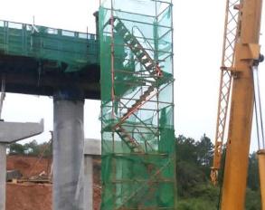 (2)高墩施工人员上下必须使用之字形爬梯,安全网、防护栏等防护设施应安全可靠。