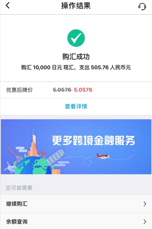 当然这里面有一定的风险,建议有一定外汇经验的可以灵活选择购汇的时间点。同时你还可以根据各个货币的行情,不直接购买目标货币,而是先持有其他货币,等其他货币上涨后再兑换成目标货币。比如你觉得美元/日元有上涨空间,你可以先买入美元,等美元兑日元上涨到一定程度后再兑换成日元。这个兑换的过程,在手机银行里比较简单,后面会有说明。但这个有一定的风险,操作要小心,不建议没有外汇经验的朋友操作。