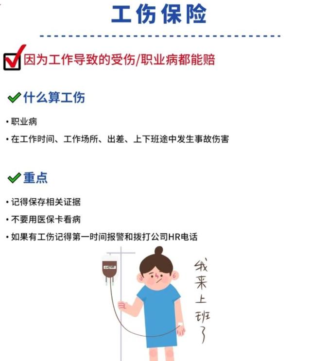 工伤保险是因为在工作中受伤或职业病都能赔钱,而且在工作时间、场所、上下班路上、出差都可以算为工伤。