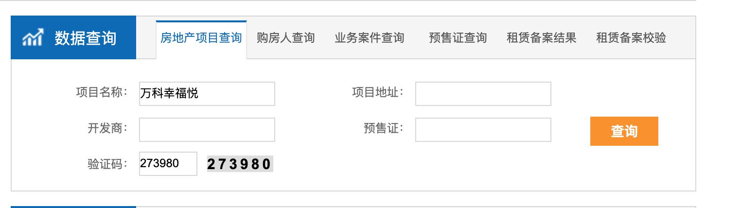 - “万科幸福誉”备案名叫“万科幸福悦”,所以输入备案名进行查询,点击查询。