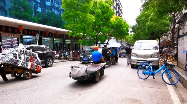 对于电瓶车的印象,可能很多朋友首先会想到的就是观光车,四个轮子敞篷运营,只在特定景区内部才有。相比之下,在湖北武汉城区闹市地带却有一种三个轮子的电瓶车,走街窜巷之中,可以随处看到这种车子的存在。车子是非正式量产出的商品,外观雷同,与一般的手推车相似,看得出来是经过一定改装,变成能够自动行驶,并且车头处往往还端坐着一位“驾驶员”。这样的车子,外观全敞开,无法载人,只能运货,穿梭在街头巷尾,十分有趣。