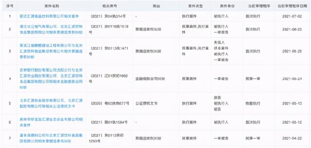 6月25日,(2021)京0116执1518号显示,北京汇源因为涉及与湖北长江电气有限公司票据追索权纠纷案,执行标的近374万元,执行法院为北京市怀柔区人民法院。