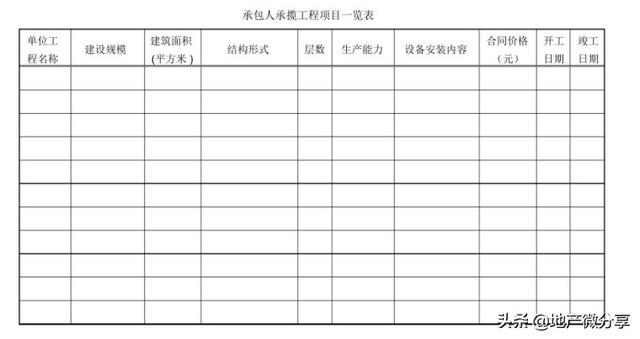 承包人承揽工程项目一览表