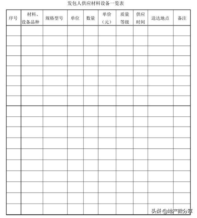 发包人供应材料设备一览表