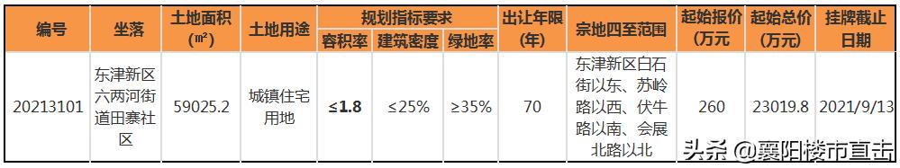 8月9日-8月15日,襄阳新增一宗土地挂牌。襄土网挂字[2021]31号,位于东津新区六两河街道田寨社区,总面积达59025.2㎡。