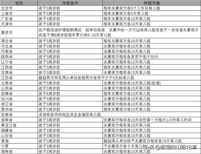 在这方面,江苏省在3月1日便正式发文,明确正式推出“育儿假”,在子女3周岁以前,夫妻双方每年可享受10天育儿假期。