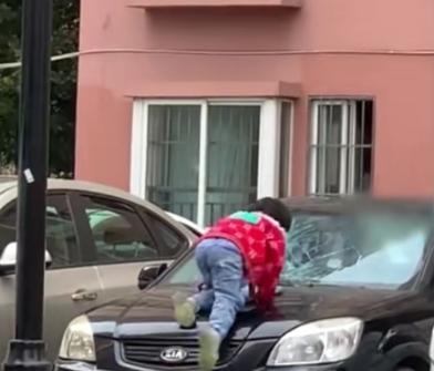 小男孩不停地用脚去踩私家车的前挡风玻璃,不一会儿私家车的前挡风玻璃就被小男孩踩碎了,两个孩子的父母只顾着聊天,并没有走上前来进行阻止。路人看不过眼并把这一幕拍了下来,可两个孩子的父母却觉得路人这是多管闲事。