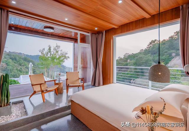 在这里住上一宿,卧床即可尽赏窗外山景,阳台之外便有触手可得的盎然绿意,客房的风格同样是简单舒适,室内清新软装搭配。