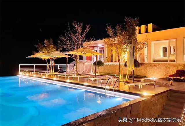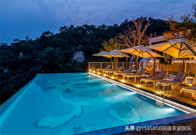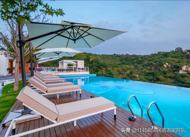 一个泳池,傍晚时分,可以在泳池玩水畅泳,享受休闲的度假时光,坐拥广阔山景,静享云卷云舒,可以一边在水中游弋嬉戏,一边将山峦、森林、天空尽收眼里,也可以舒服宅在池边躺椅,什么都不做,收获除了好眠床之外带来的慵懒,山野里的淳朴清新,处处散发着让人无法抗拒的魅力。