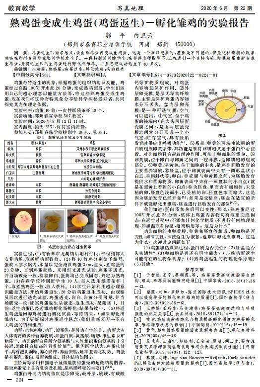 近日,一篇“熟蛋返生孵小鸡”的论文引发网友热议,论文作者把“选择正常、新鲜的受精鸡蛋,经过开水煮沸以后变成熟鸡蛋,再通过‘特异学生’的‘意念和能量传播’使鸡蛋还原成生鸡蛋,做到不伤害鸡蛋的生物活性,使它能正常孵化出小鸡并能正常生长”当作实验目标。论文中提到,在该校导师指导下,学生通过超心理意识能量方法,使煮熟的鸡蛋变成生鸡蛋,并将返生后的鸡蛋孵化成小鸡,而且已成功返生40多枚。根据公开资料显示,该论文发表于2020年6月份的《写真地理》杂志。作者为郑州市春霖职业培训学校校长郭平、河南某医院的主任医师白卫云。