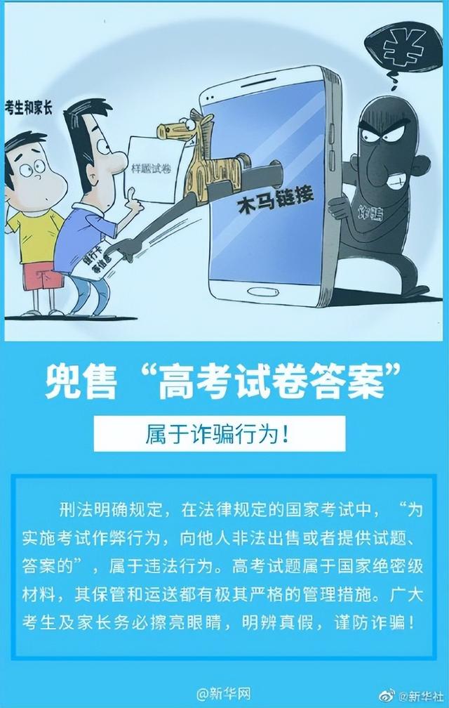 距2022高考还剩1天,有些不良机构或不法分子妄图借高考之机牟取不法利益。广大考生和家长要增强法律意识,诚信考试,切勿心存侥幸。①组织高考作弊,属于严重违法!②替考不是捷径,而是“绝境”!③心存侥幸带手机,考试作弊毁前程!④发布虚假广告宣传,贻误宝贵复习时间!⑤兜售“高考试卷答案”,属于诈骗行为!⑥散布传播“小道消息”,依法依约严肃处置!