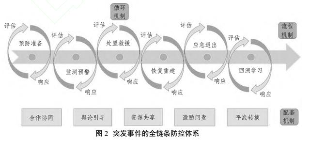 应在坚持源头治理和过程管理相结合、以防为主与防抗救相结合的基础上,重点抓“全流程改造”和“全领域落地”,构建突发事件全链条防控体系新框架,实现在不同领域的全方位落地,使体系运转更加顺畅、体系功能充分发挥。