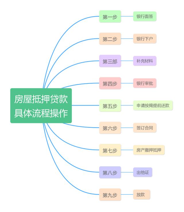 楼主跟房屋抵押贷款的标准业务有点不同,因为楼主的房子已经申请按揭贷款了,现在想申请一抵的话,必须先还清原来的按揭贷款,可能会比之前房屋抵押贷款的标准业务的时间长一点,但如果规划好,还是很容易批下来的,不会竹篮打水一场空的啦。以下就是大致的操作流程可供大家参考: