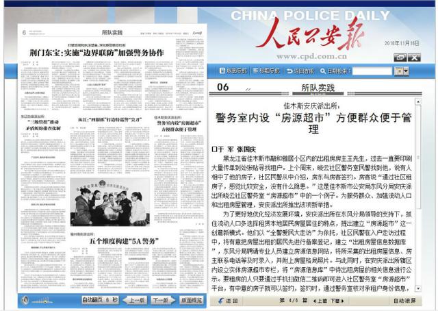 黑龙江省佳木斯市融和雅居小区内的出租房房主王先生,过去一直要印刷大量传单到处张贴寻找租户。上个周末,晓云社区警务室民警找到他,说有人相中了他的房子,社区民警从中介绍,房东与房客签约。房客说“通过社区租房子,感觉比较安全,没有什么隐患。”这是佳木斯市公安局东风分局安庆派出所晓云社区警务室“房源超市”中的一个例子。为服务群众、加强流动人口和出租房屋管理,安庆派出所推出该项新举措。