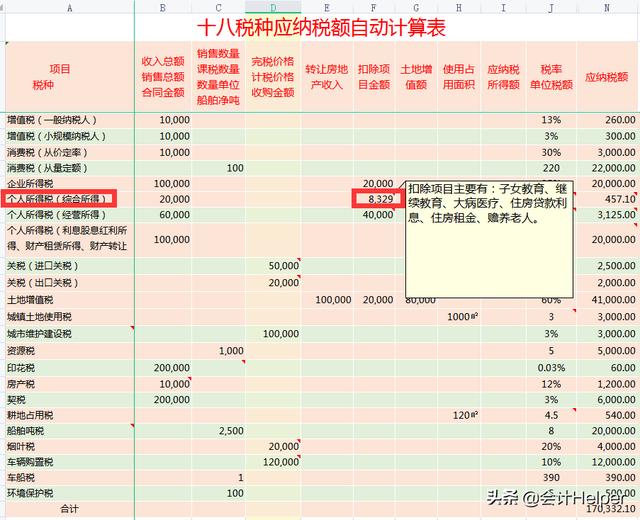 【2021最新18个税种计算模板:自动计算应纳税额,附分录大全】