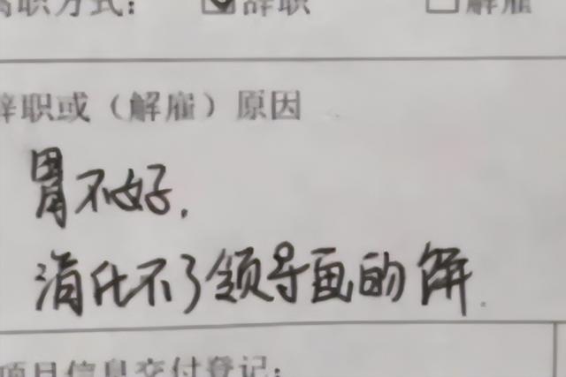 比如这位00后的辞职理由写的就是“老板给画的饼太大,我吃不下”,很明显在讽刺老板画大饼,一看也是个老阴阳人了,这要放在一般人那里有哪个敢这么交辞职信的。