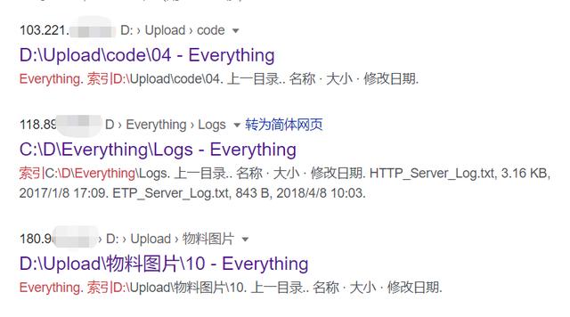Everything服务器上的电脑IP,恰恰被世界最大搜索引擎谷歌,扒得一干二净。