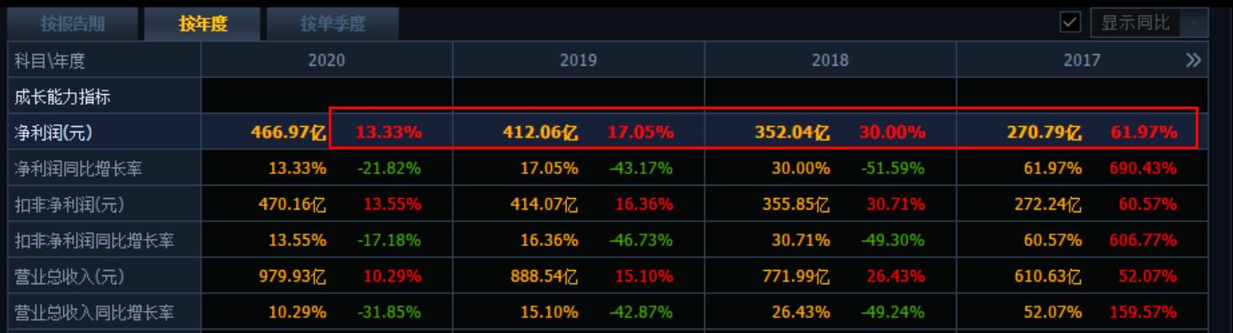 可以看到,首当其冲就是主要经营指标的增速都在放缓,算上去年的话,净利润增速已经连续四年下滑了,这个趋势并没有止稳迹象,从年初贵州茅台发布的《2021年度生产经营情况公告》看。贵州茅台全年预计实现营业总收入 1090 亿,同比增 11.2%,录得净利润 520亿左右。同比增 11.3%,说明现在已经进入了一个增速在10%左右的温和增长阶段!