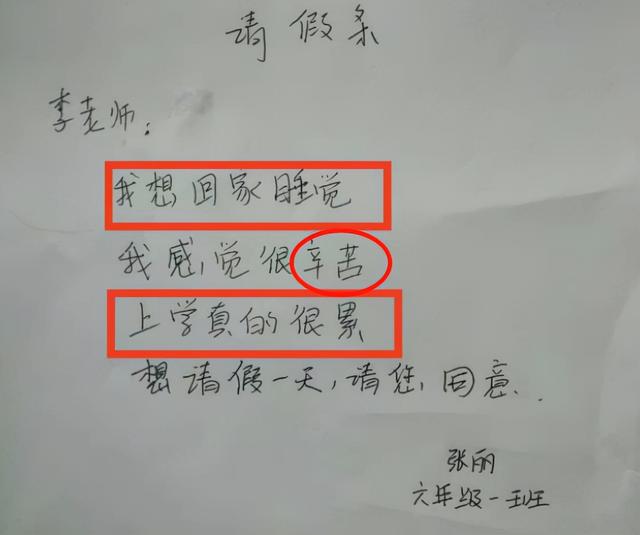 实际上中小学生写请假条,一方面是让学生锻炼书面表达能力,另一方面学生给出的请假条需要老师和家长签字,以证明请假理由的真实性,不过有些学生“逃课”之心溢于言表,老师又岂能轻易批准休假呢?