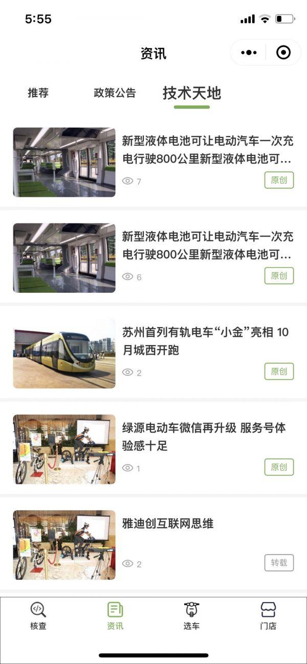 小程序的“资讯”功能页面,提供电动自行车行业的新闻资讯。 手机截图