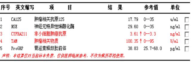 CEA:122.07 ng/mL,非小细胞肺癌相关抗原:11.38 ng/mL-12-12 第3周期白蛋白紫杉醇+卡铂(未使用免疫治疗),甲强龙 60mg qd