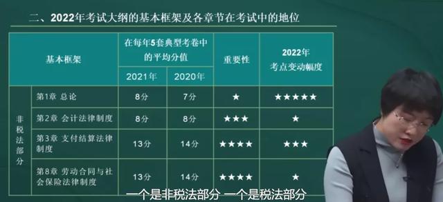 第一部分(非税法章节)为第一章、第二章、第三章和第八章,其中,支付结算、劳动合同与社保为“非税法章节”中的重点章节,考核分值占比约26%;