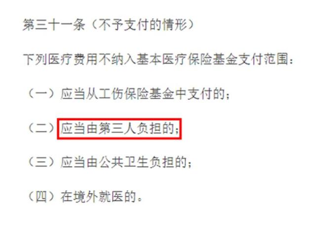 医保报销范围规定了应当由第三者负担的医保不予报销: