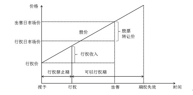 在股票期权到期日之前的行权期内,如果公司股票的市场价格高于约定的行权价格,经理人就会执行期权,按照约定的价格买进公司股票,再按市场价格卖出,卖出买进的价差就是经理人的期权收入。一般情况下,授予期权时,经理人并不会真正购买股票,这也是期权和股票的真正差别。公司授予经理人的仅仅是期权,是不确定的未来的收益,这种收益最后是在证券市场中最终实现的,企业不需要任何现金支出,这就是所谓的“公司请客,市场买单”。通过将经理人的收入与公司股价高度挂钩,利用经理人追求股票价差的自利行为,来达到让经理人努力提升公司业绩拉高公司股价的目的。