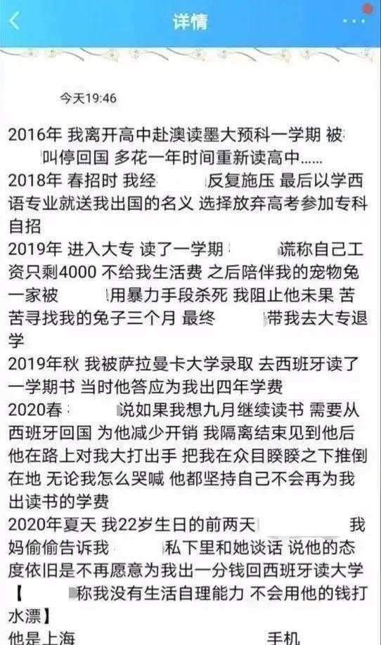 她在网上如此辱骂自己的父亲,让人心寒,正如一位读者给学堂留言所写: