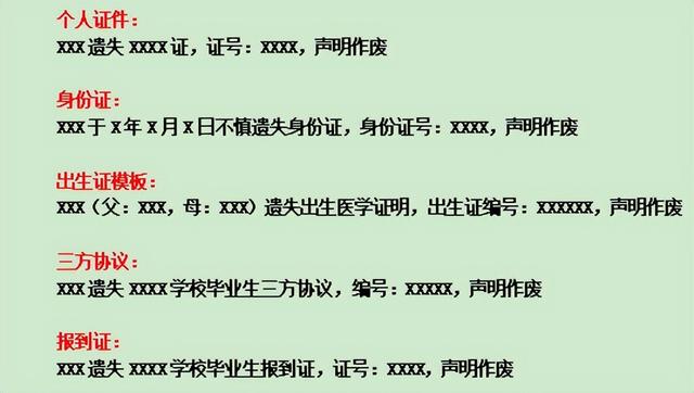 第二步:按照发证的单位也就是去要去补证的单位编辑需要刊登的内容。下面给大家分享一下常用的格式。