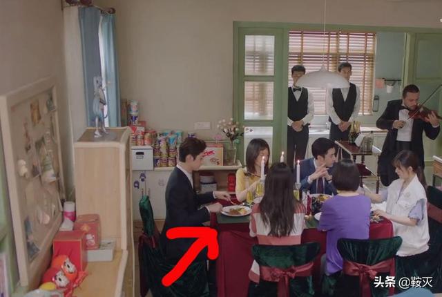 小伙伴们请看下图,就是赵露思招待她男朋友在出租屋用餐的剧情画面,正宗白人的后面,还站着中国的侍者。整个餐桌上,摆放的全是西方的盘子和碟子,还有蜡烛和刀叉,当然还有餐巾……