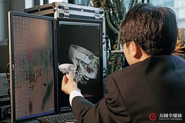 浙江省检察技术专家洪翔拿出颅骨模型与鉴定的图像进行比较。(来源:资料图片)