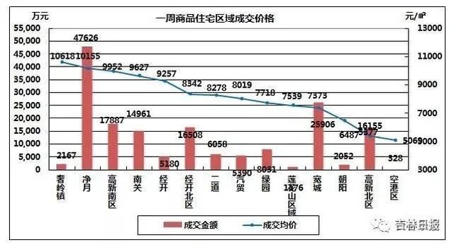 上周(6月25日-7月1日)商品住宅市场成交总额为16.94 亿元,成交总金额上,净月区的成交金额最高,成交金额4.76亿元,宽城区居第二,成交2.59亿元,高新南区第三,成交1.79亿元,奢岭的均价10618元/㎡,位居各区均价之首,净月区以10155元/㎡居第二。