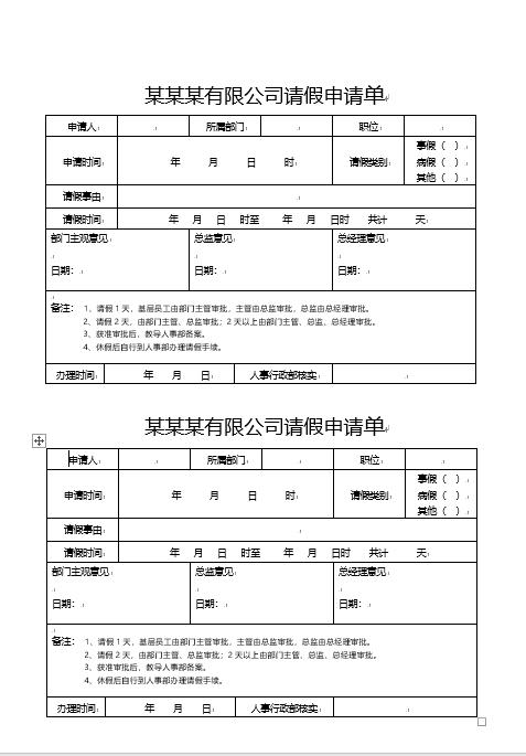 大家请看范例图片,word排版,请假申请单完整排版,表格框架专业清晰,使用各大场景应用。