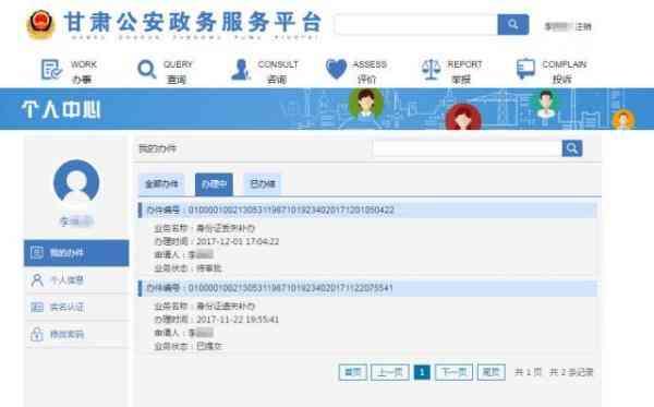 第七步:点击“身份证丢失补办”,打开如下界面: