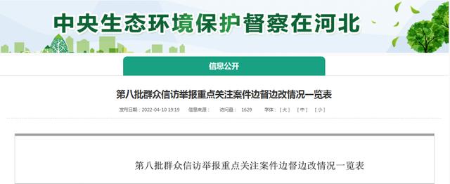 近日,河青新闻网邯郸频道的记者从河北省生态环境厅官方网站获悉,该网站最新公布一则《第八批群众信访举报重点关注案件边督边改情况一览表》。