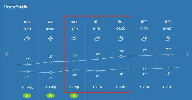 根据郑州气象,预计4月3日、4月4日、4月5日,郑州的天气为 晴/多云转晴 ,没有雨,最高气温26℃,最低气温9℃。