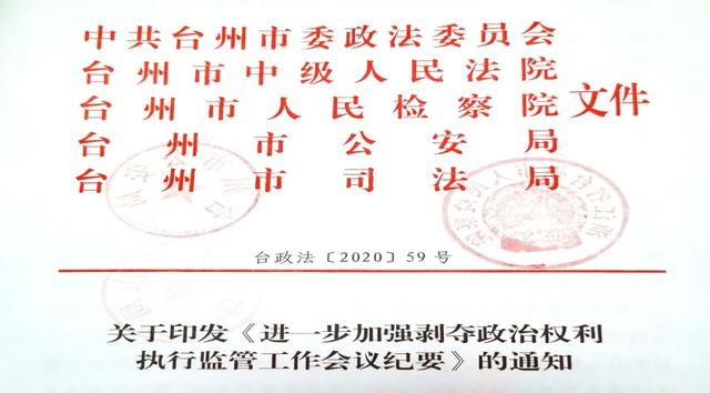● 积极推动台州市委政法委出台《关于进一步加强剥夺政治权利执行监管工作会议纪要》,对相关工作做进一步规范。