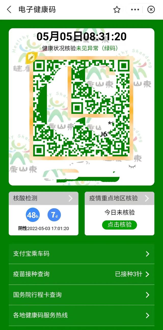 山东健康码界面又“升级”了,可同屏显示健康码、核酸检测结果、疫情重点地区核验信息及疫苗接种情况等,比以前更加方便。